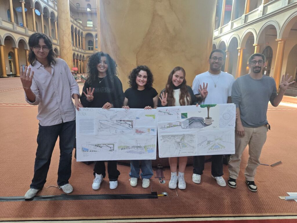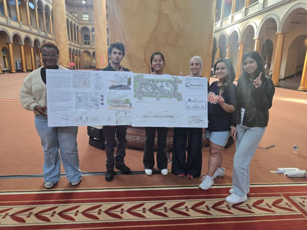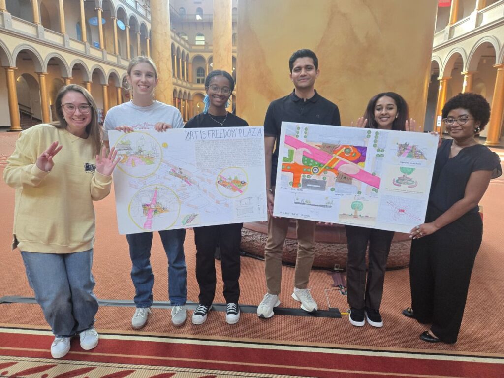 This year’s program theme was provided by Howard University: “Downtown Culture: Bridging the Gap Between National, Civic, and Local Community Activation of the Public Realm” in relation to Washington, D.C.’s Freedom Plaza. For the competition, students were tasked with proposing a design for Freedom Plaza that aligned with its dual personality as a civic stage and local venue.