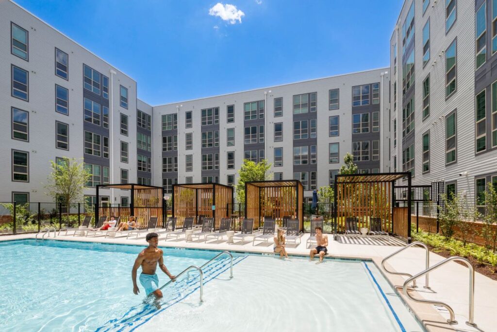 Additionally, the Amazon Housing Equity Fund partnered with DC Metro and the development team to help fund affordable housing units on the site. Amazon’s agreement to provide 100% affordable units for residents earning 80% of area median income (AMI) for the life of the project helped transform the vision into reality. As a result, Atworth was completed in December 2023 as a landmark project for College Park and a model for future development. Combined with the project’s mass transit benefits, Atworth sets a new green and socially-conscious standard for the area. Atworth is a forward-thinking, sustainable approach to affordable housing and transit-oriented development in College Park.